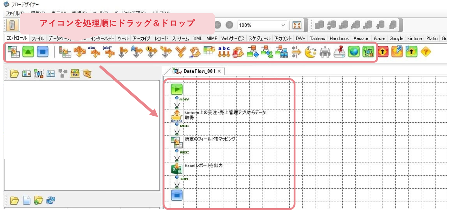 連携処理をノーコードかつGUIベースで構築できるため、専門的なプログラミングスキルが豊富でない方でも連携処理を構築できます。RPAなどと比較しても、複雑な分岐処理やデータ変換の設計がしやすく、保守性にも優れている点が特長です。