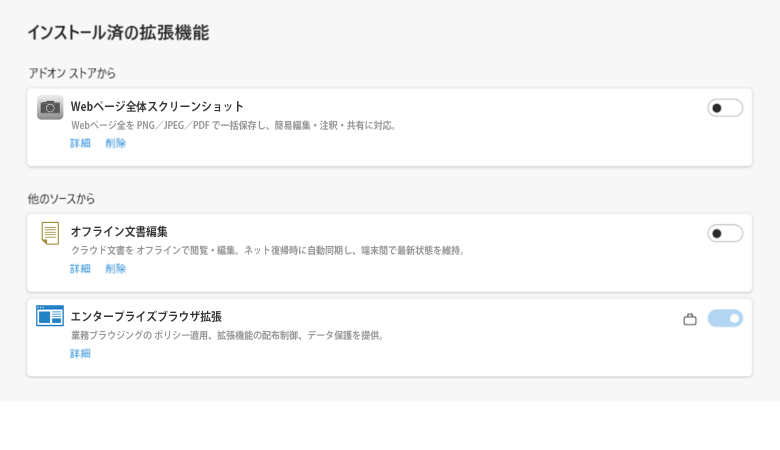 近年ではブラウザ拡張機能の脆弱性や、従業員による自由な拡張機能の利用が課題となっています。そういった拡張機能の対応も可能です。